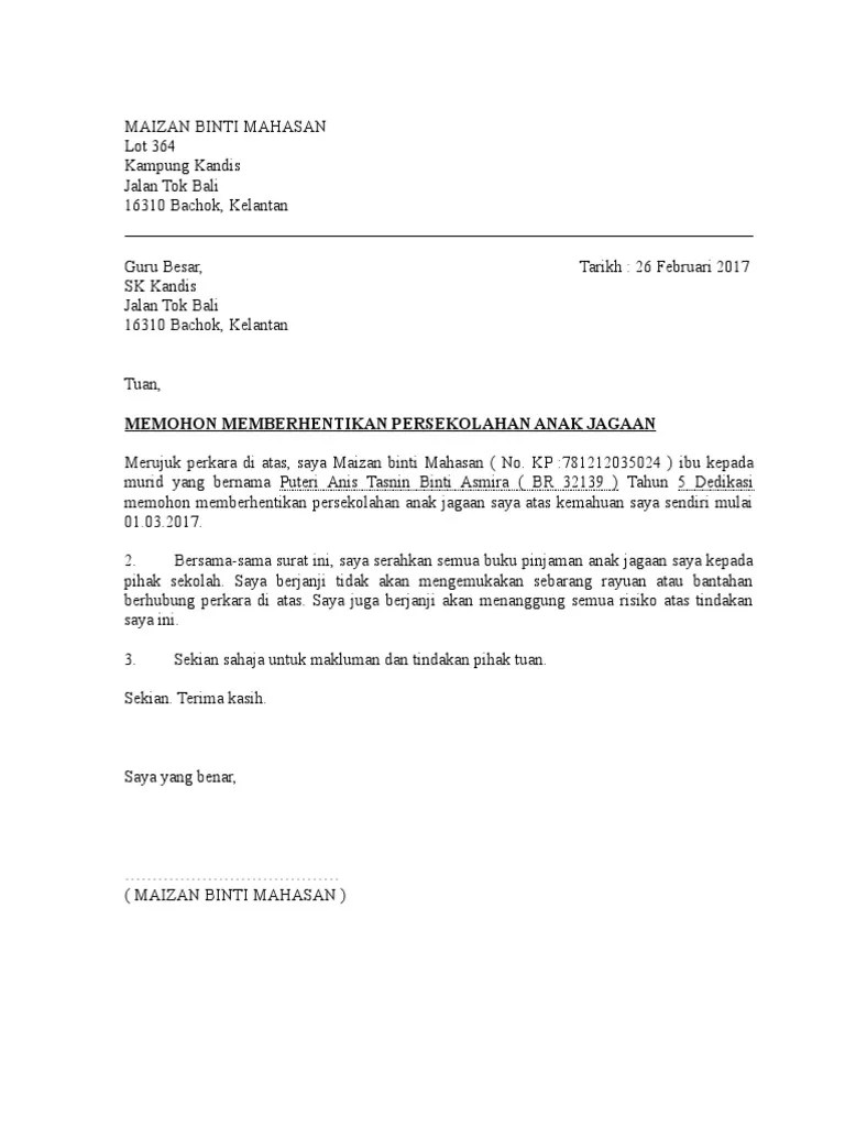 Setelah fikir masak masak kami . Surat rasmi berhenti taska rasmi v. Tadika swasta, contoh surat rasmi berhenti sekolah, format surat .